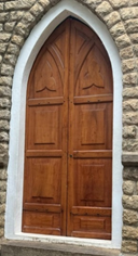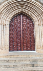The wooden Gothic doors feature intricate carvings and pointed arches, characteristic of the style. Rich in detail, the doors are adorned with delicate tracery, while the are framed with ornate latticework. The main entrance, the door is made of rose wood. Others were made of teak wood.