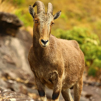 The Nilgiri Tahr (Nilgiritragus hylocrius) is a mountain goat native to the Western Ghats of India. It has a robust, muscular build, with short, dense fur and a reddish-brown coat. Primarily found in high-altitude grasslands, it is herbivorous, feeding on grasses and shrubs. The species is endangered due to habitat loss and hunting. Conservation efforts are underway, including protection in reserves like Eravikulam National Park.